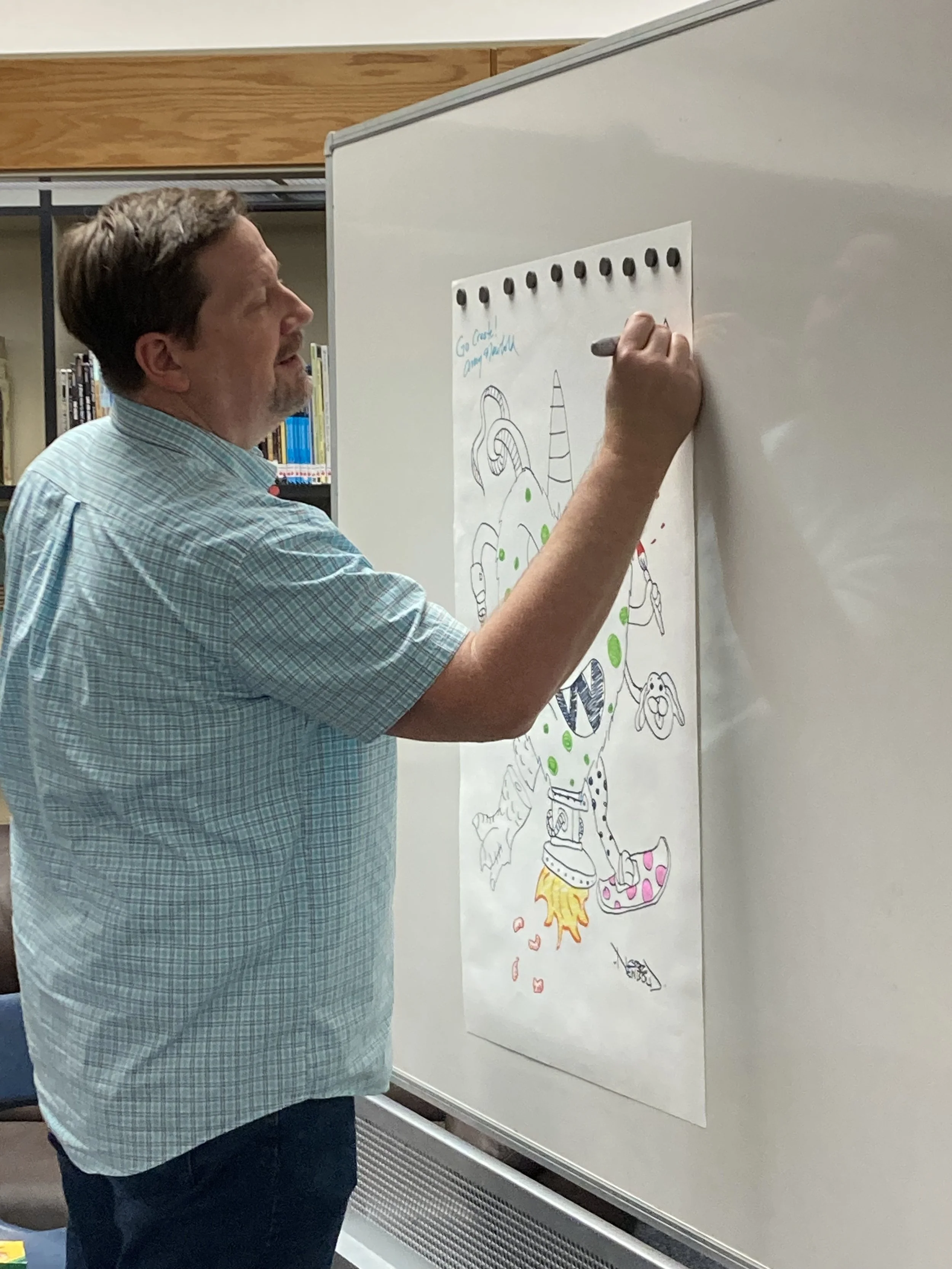 The virtual author visit with Greg and Amy was a fun and educational experience for our students, as they learned firsthand how the author and illustrator collaborate to create a book. Greg and Amy kept everyone engaged with an interactive story and drawing activity, making the session both educational and fun!